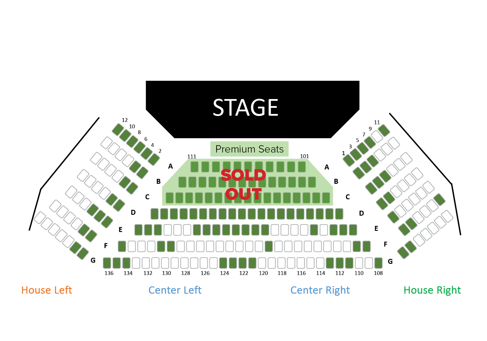 Total seats sold (green): 131