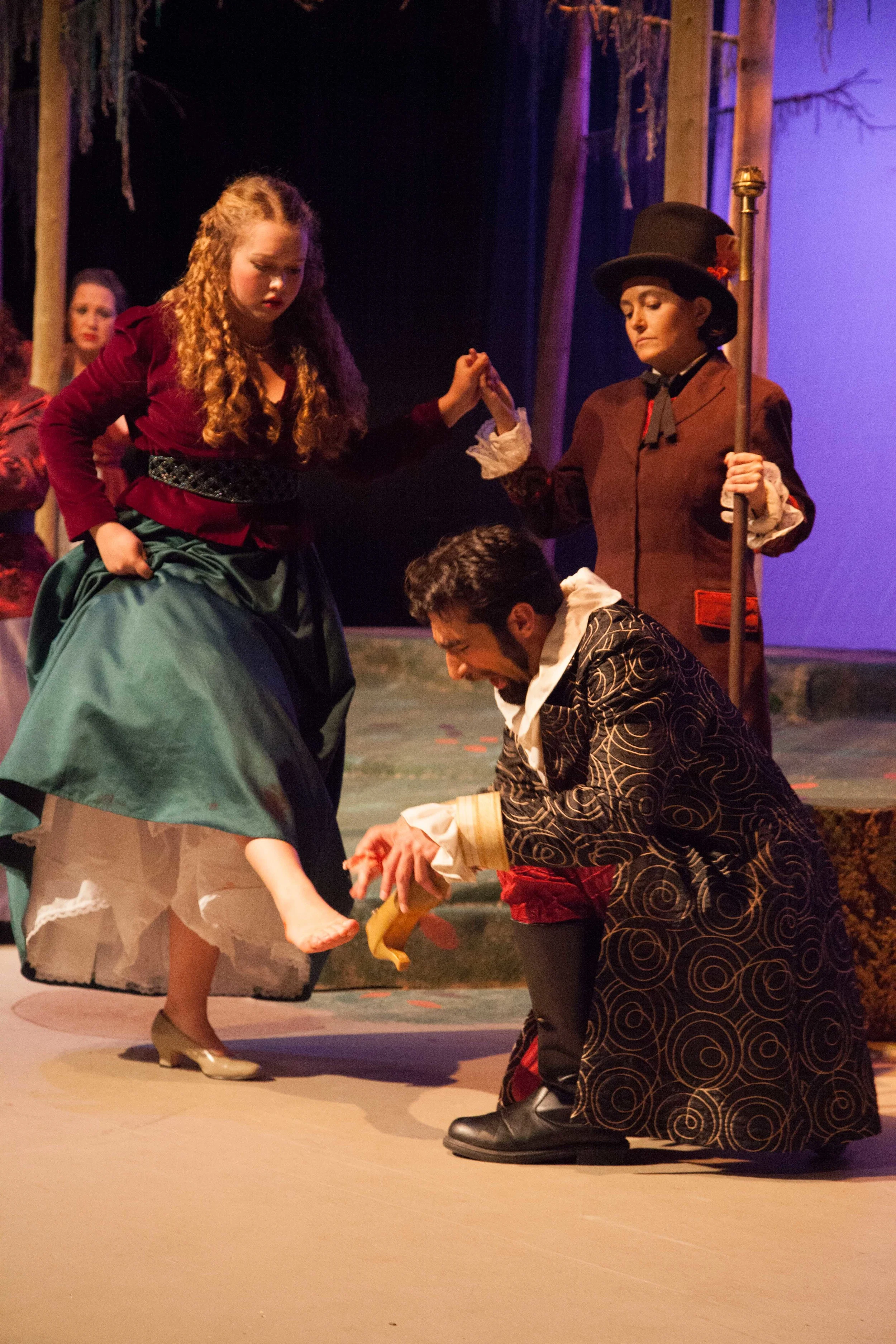 Lucy Pearce as The Steward with Hannah McConnaughey as Lucinda and Ethan Berkley as Cinderella's Prince in Into the Woods, October 2014 - photo by j shu images